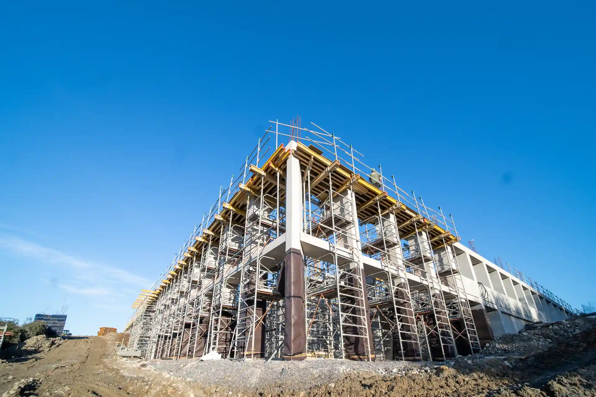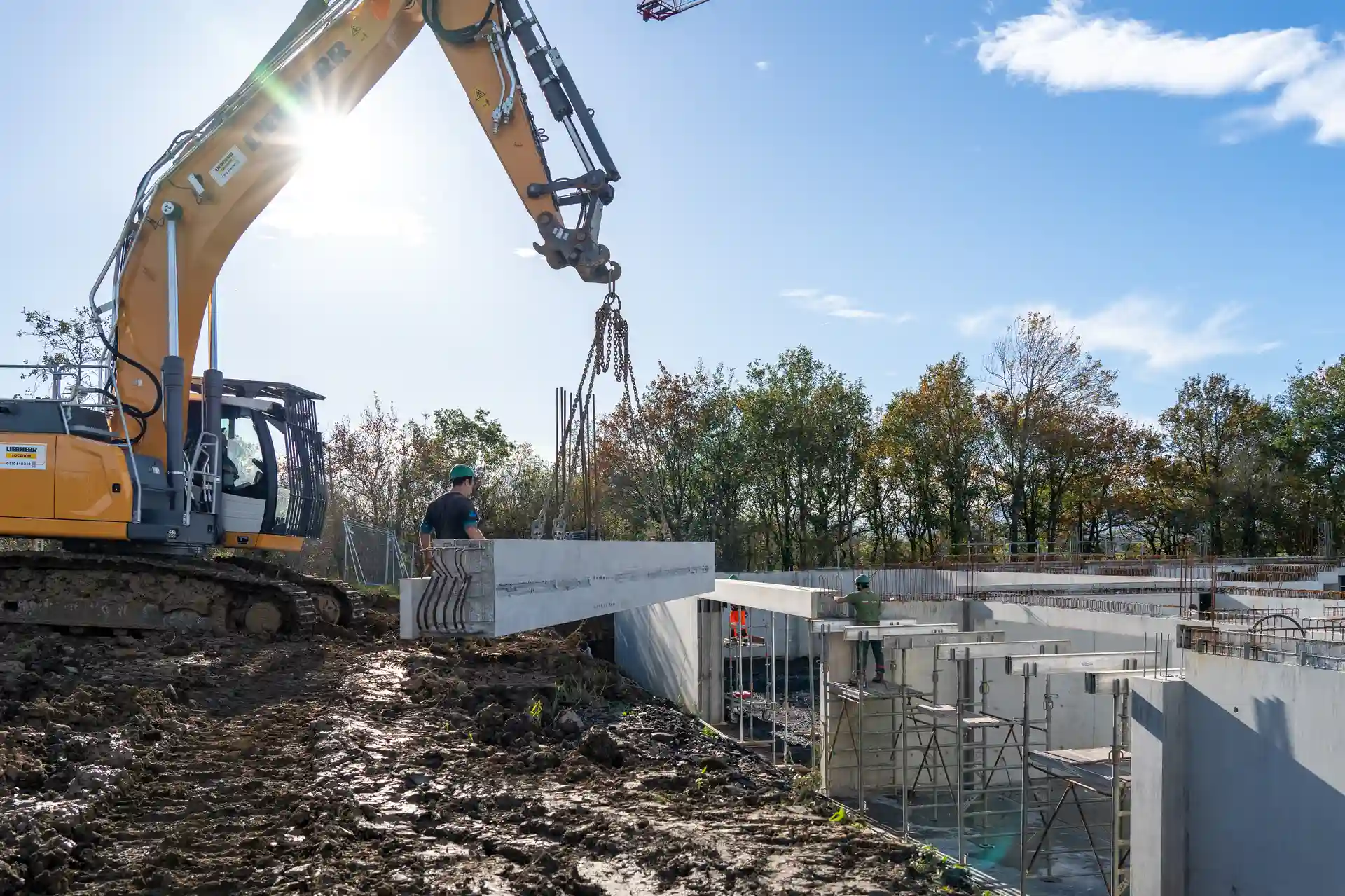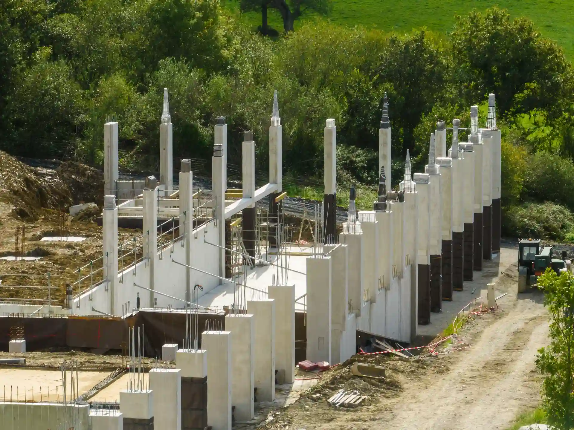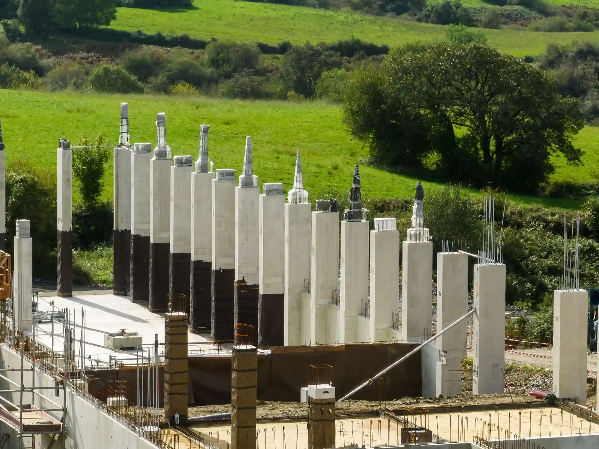 Réalisation de poteaux grande hauteur, bandeaux, garde-corps, et escaliers.