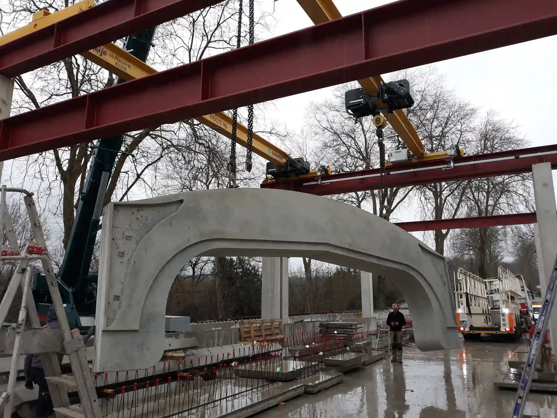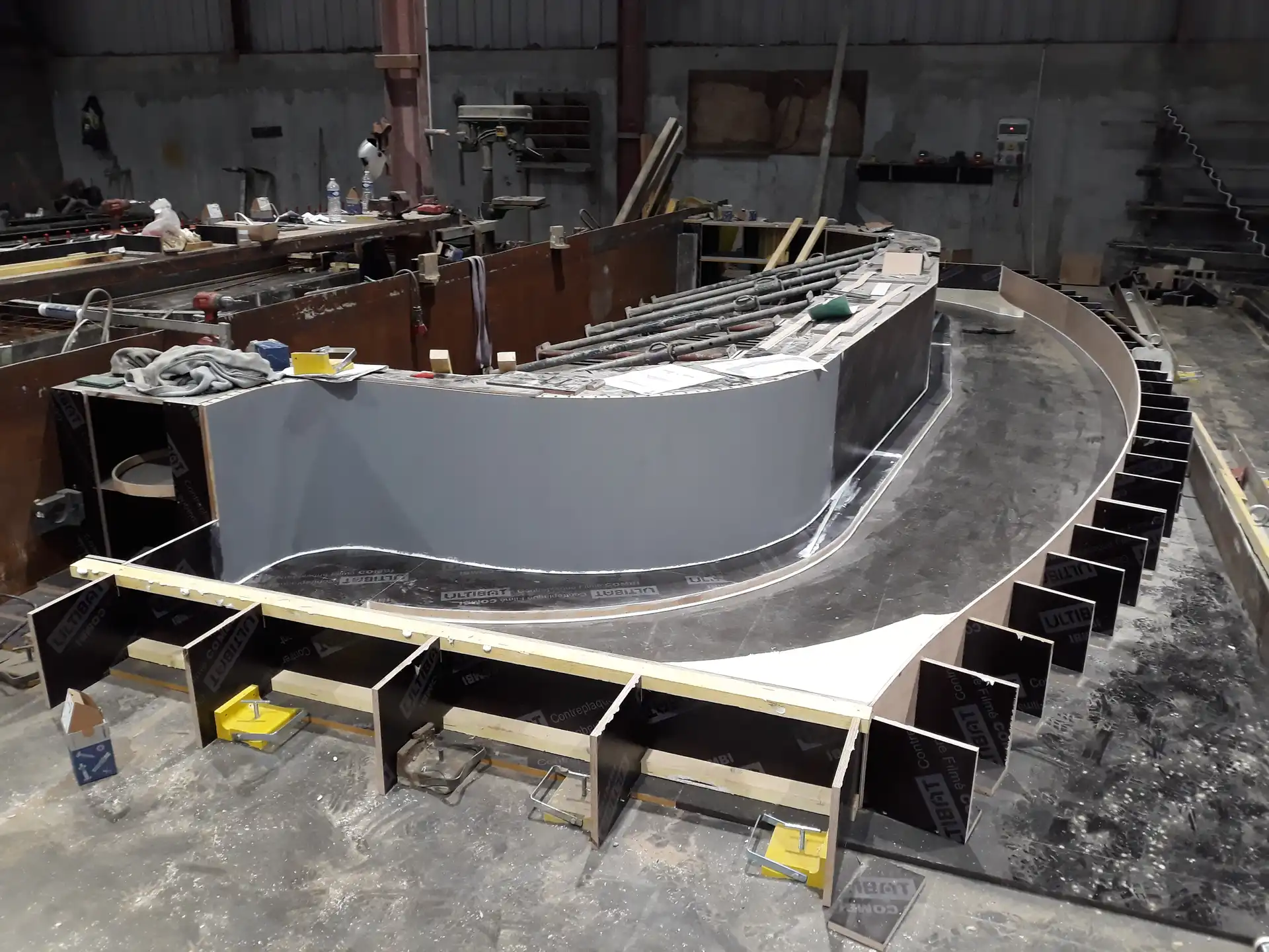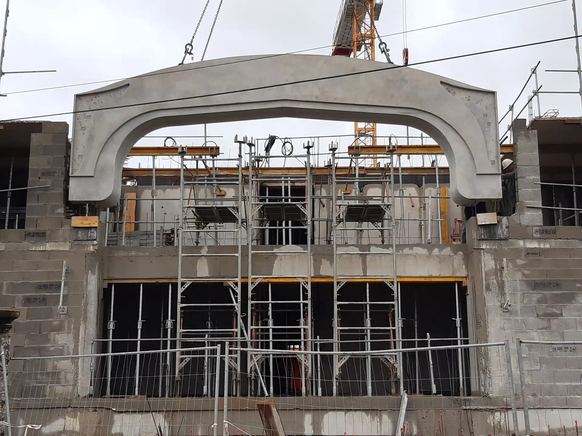 Réalisation de linteaux cintrés moulurés et poteaux.